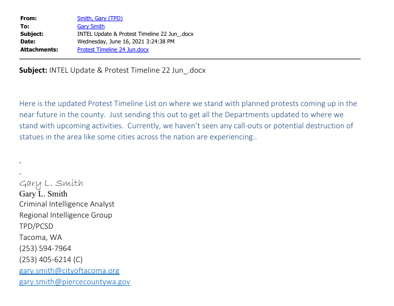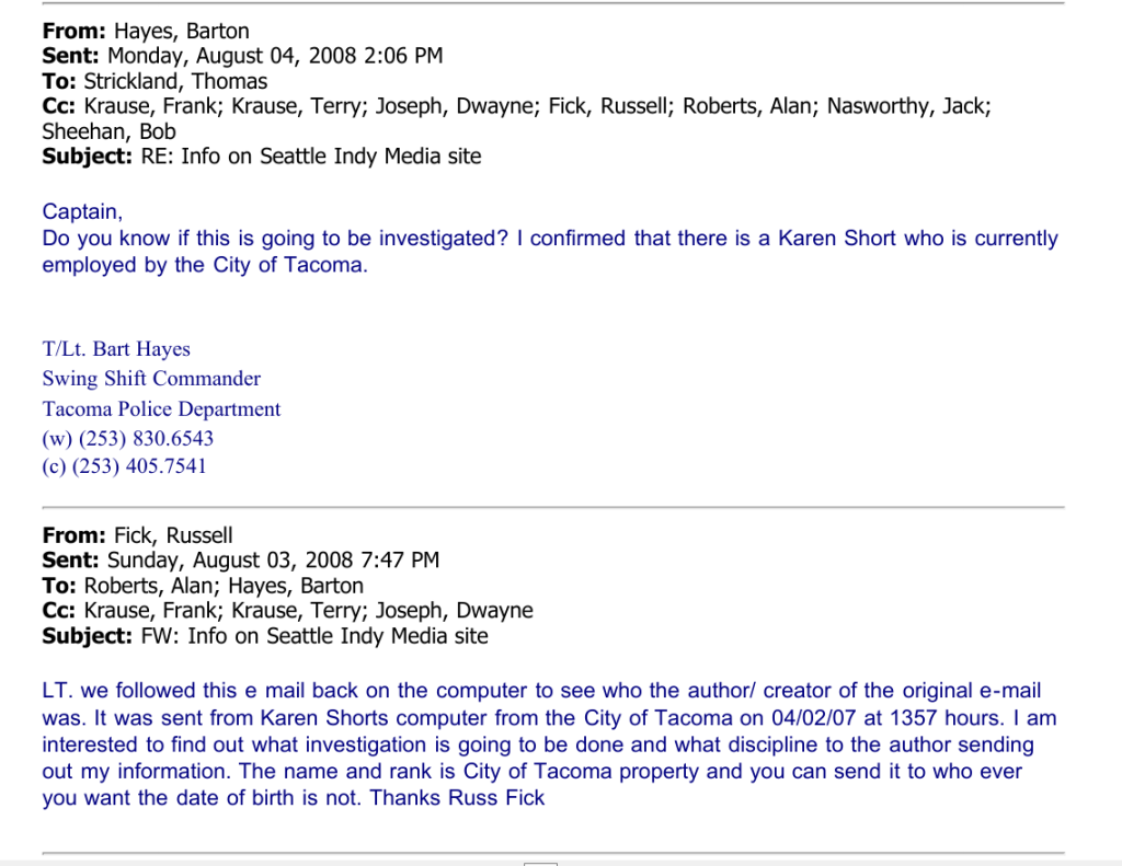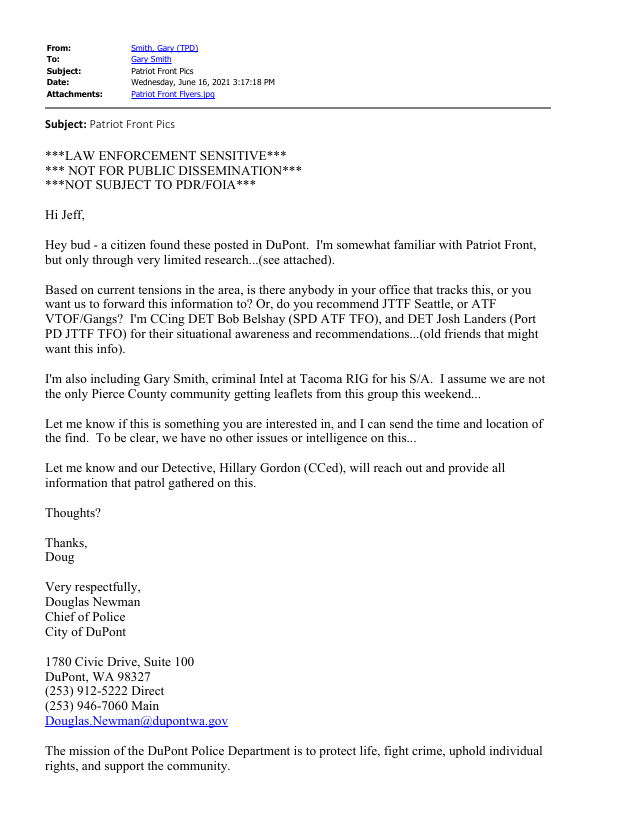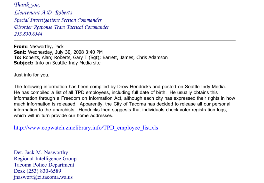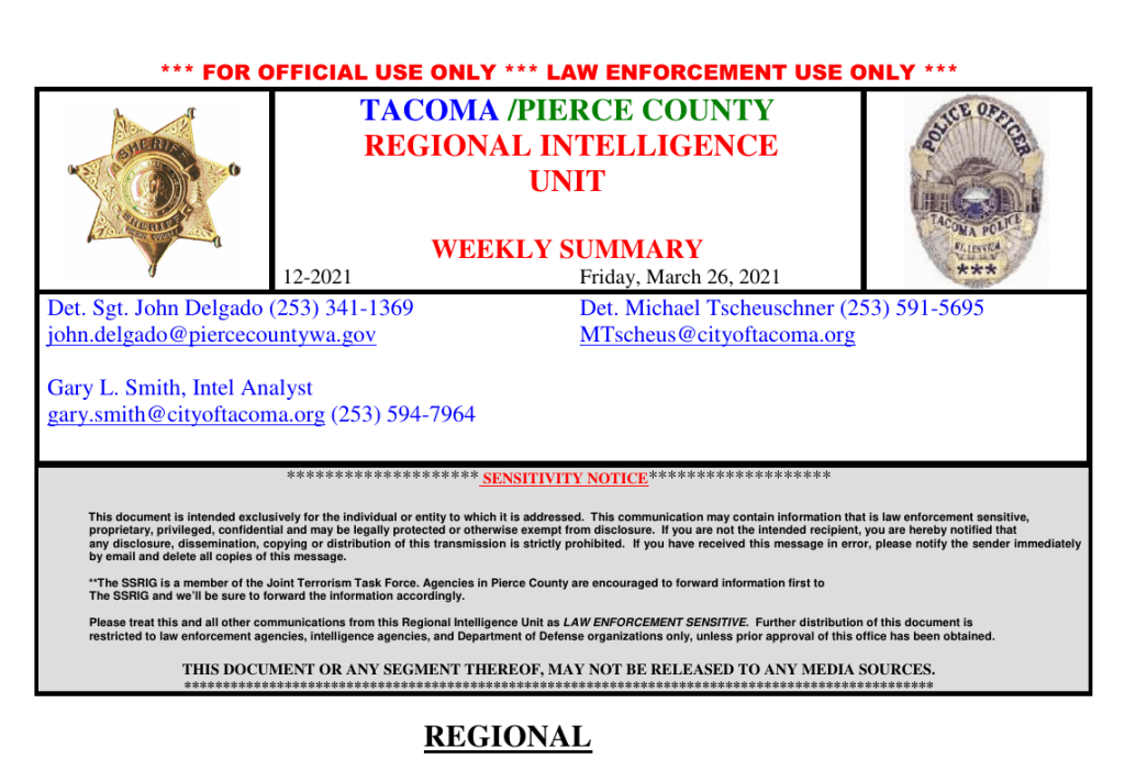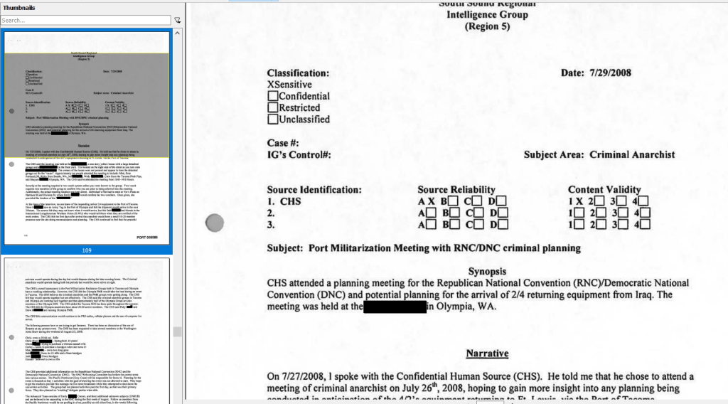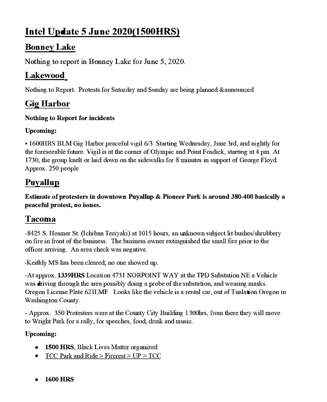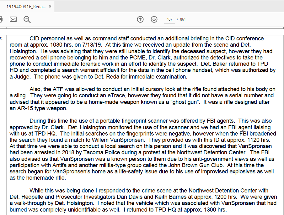 Anyway Tim Smith put that little piece together and got it to some public posts, My partner and I worked day and night to work out the REDACTED versions of the OSINTed fednotes posted to Cryptome. The original was on the City of Tacoma public records dump for about 4 months until it was pushed off the stack by new records. Cops use Public records to punish, to hide records “offsite” and to signal partner non-governmental entities like Vigilantes and Paramilitary formations.