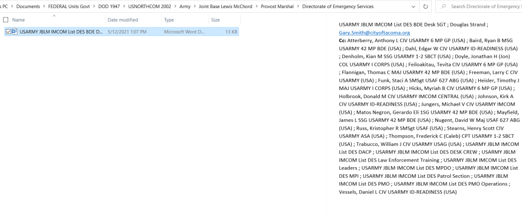 - John worked for Two main Units: JBLM DES, Directorate of Emergency Services, which is basically the On Base cops for seeking out subversion and disloyalty.