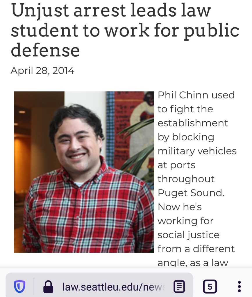 The US Army infiltrated, and then disrupted, an organized body of US citizens who were consciously and deliberately enforcing laws which had been promulgated at the end of World War Two. Those laws – the Nuremberg Charter and the United Nations Charter – expressly forbid the prosecution of an aggressive war. The highest crime under these laws is the crime against the peace. The next highest is the crime against humanity. The lowest is the simple war crime. An individual soldier deciding to murder a non combatant civilian is committing a war crime when he does so. A military unit which arrests, tortures, and murders a group of persons because they were union organizers in an oil field is committing a crime against humanity. And a nation which breaks the peace to invade another country, upon no legitimate defensive mission and without provocation, is committing the highest crime – the crime against the peace. It was this law which made all of Olympia’s residents complicit in the crimes which were being facilitated by the use of our Port’s marine terminal. Indeed, the entire County was responsible legally, for the county wide district which owns and operates the Port. The Nuremberg Charter clearly and explicitly leaves us responsible for our government’s actions, including the responsibility to directly take steps to make these crimes impossible to commit.