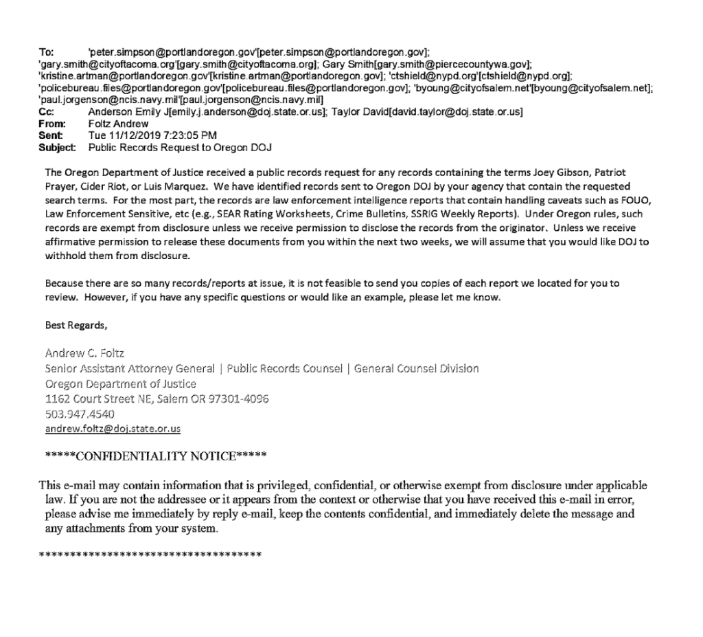 Oregon DOJ sends the Burn Notice to Gary Smith and friends – at NCIS. Why the Navy? Well… Gary is in close coordination on all of this for the Region after all. But he’s not sending stuff to the NAVY here, and ODOJ is sending their burn notice to NCIS because they ALSO get stuff FROM NCIS. So, who at NCIS is sending What?