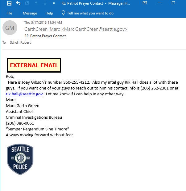 Joey Gibson works with SPD intel Rik Hall by 2018