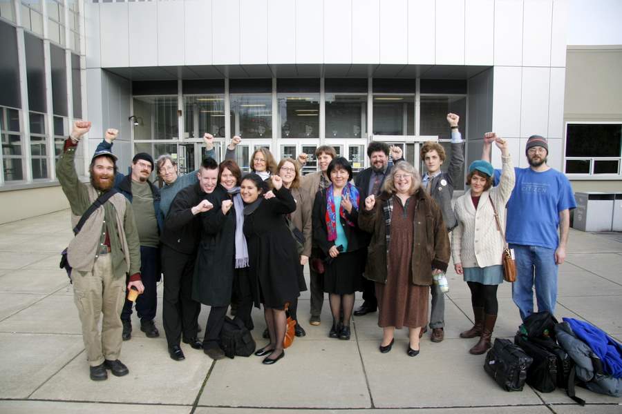 March 2nd 2009 turned out to be a very important date in the history of civil resistance in the Northwest. An anarchist “popular assembly” meeting (Meeting One) was scheduled to begin at the First Christian Church that night, from 6PM until 8PM. TESC Vice President for Diversity Affairs, Gallegos, attended the opening remarks and then left after he collected the newly published Olympia Copwatch profiles of several OPD officers, from a table at the event. TESC professor Joe Tougas attended the rest of the session, joining the “radical accountability break out group” – which was headed by PMR participant and TESC SDS member Brooke Stepp. When I later sent an email message to the subcommittee raising concerns about TESC professors taking part in radical accountability processes in Olympia, I was apparently cut out of further organizing and saw no more emails from that subcommittee.