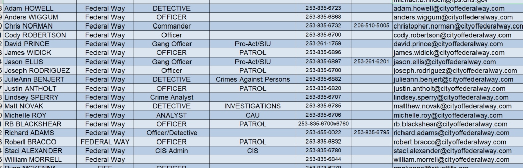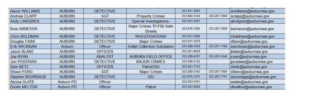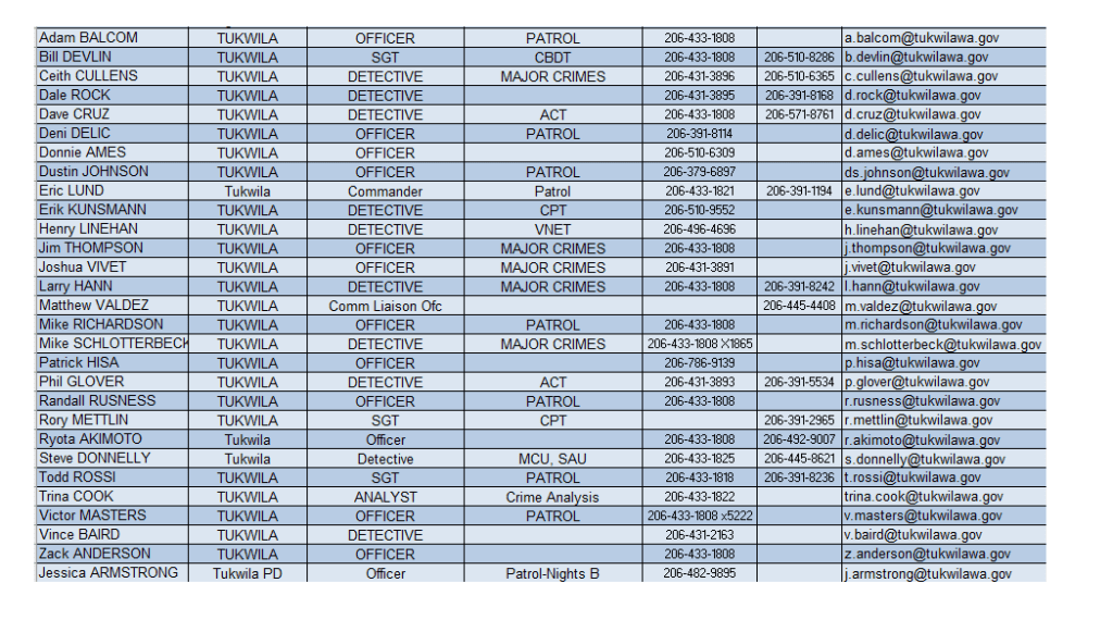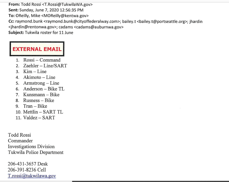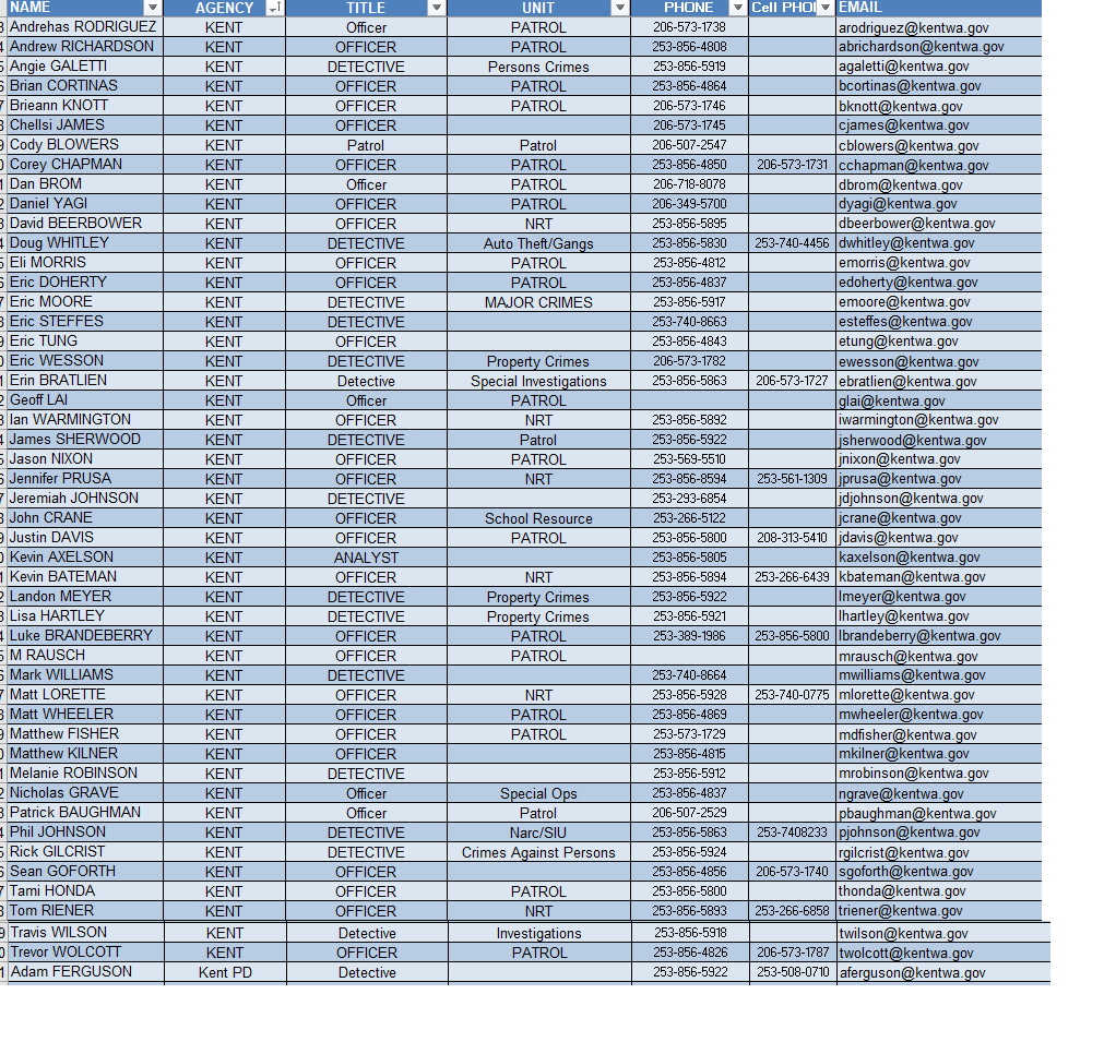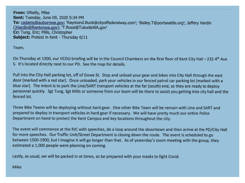 The Valley Civil Disturbance Unit is a multi agency complex of mutual aid SWAT and BIKE and RIOT cops. Together they make up the main protest response group South of Seattle and North of Tacoma. They can be seen in either city. VCDU is made up of Auburn, Federal Way, Port of Seattle, Renton, Tukwila, and Kent PD.