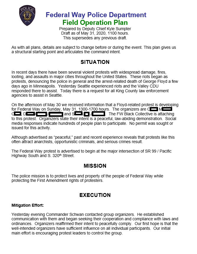 Presented is a small collection of raw records from their recent responses to May 30, 31, June 1 and some later early June demonstrations.