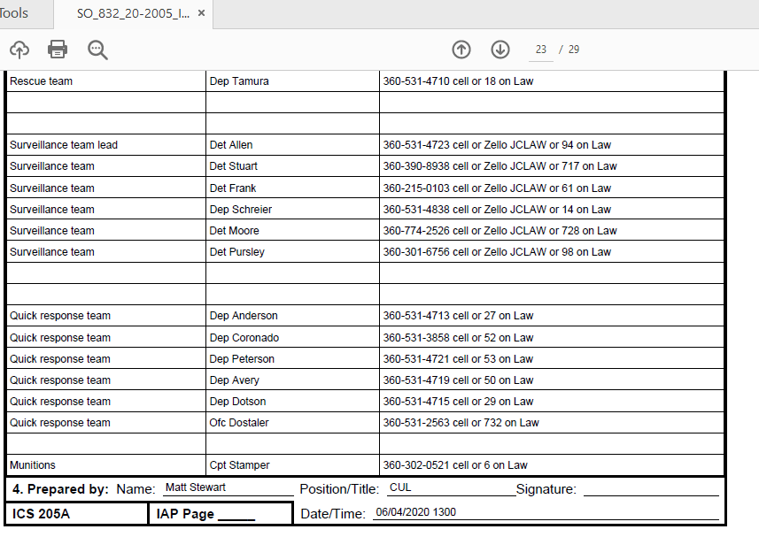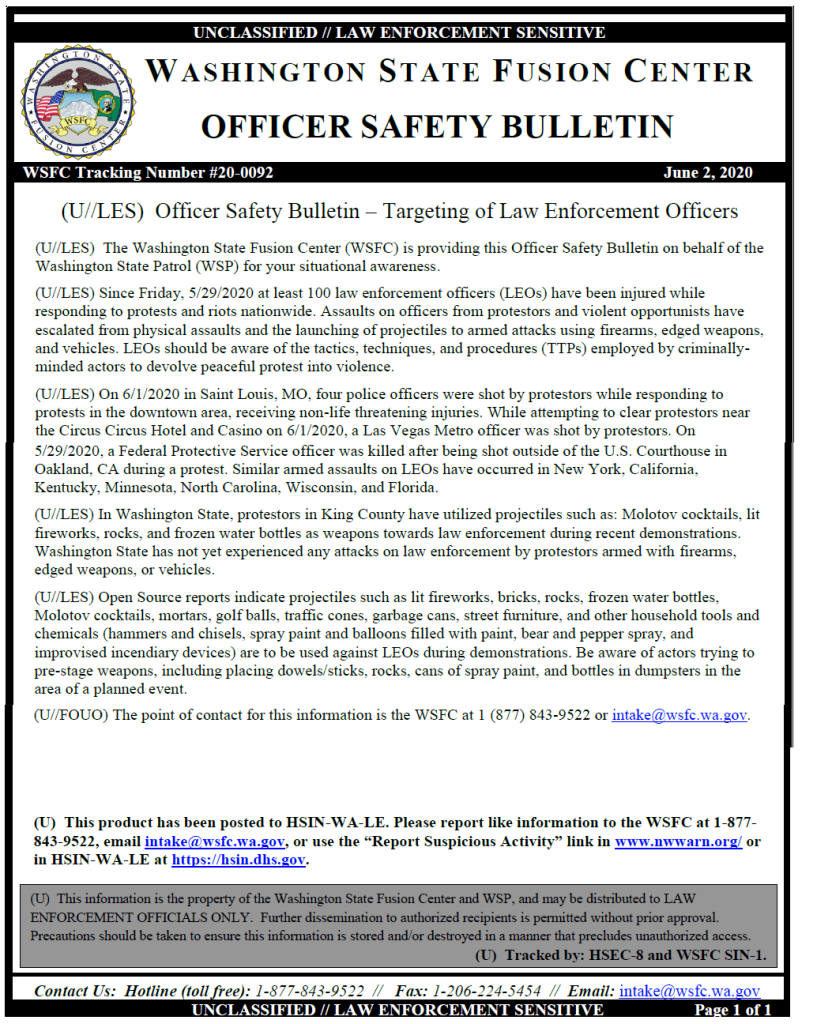 Raw Intelligence (rumor passing) from Port of Seattle to partner agencies May 31 2020 – June 1 2020. Protest Intelligence and source leaks intact.