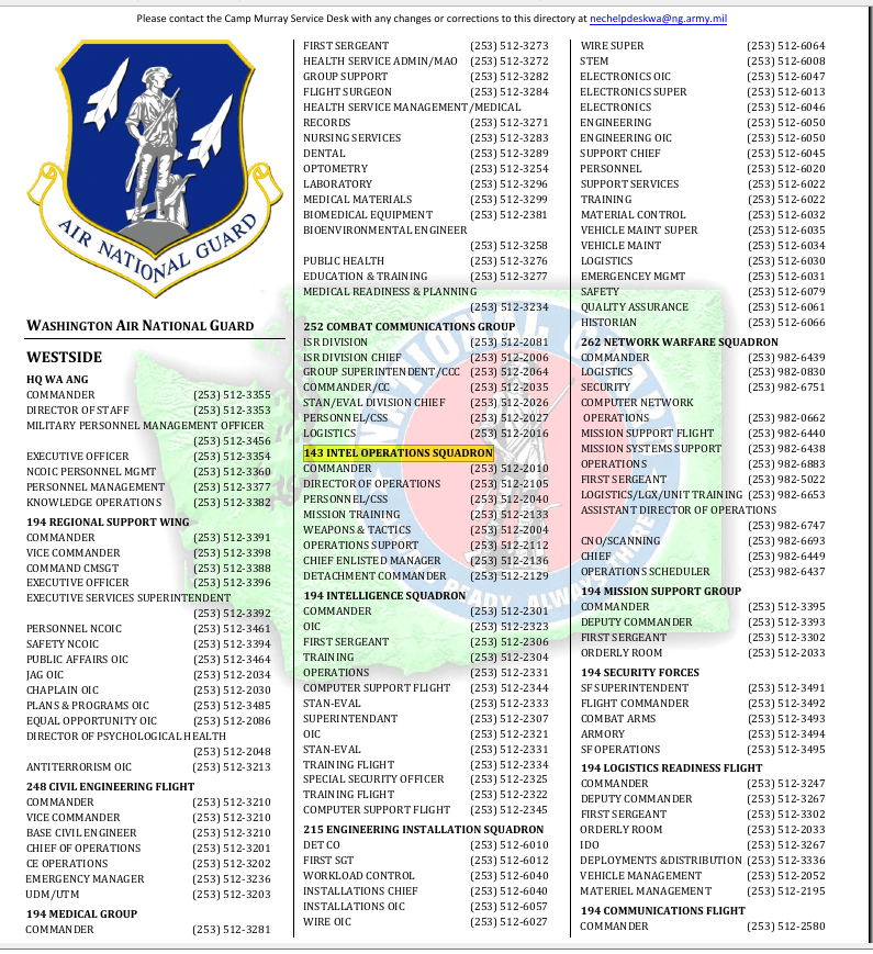 The Force Protection Daily is a list that tells you who’s whom (basic level) in the JBLM / WA MIL sphere of Domestic COIN, or Counter Insurgency operations.