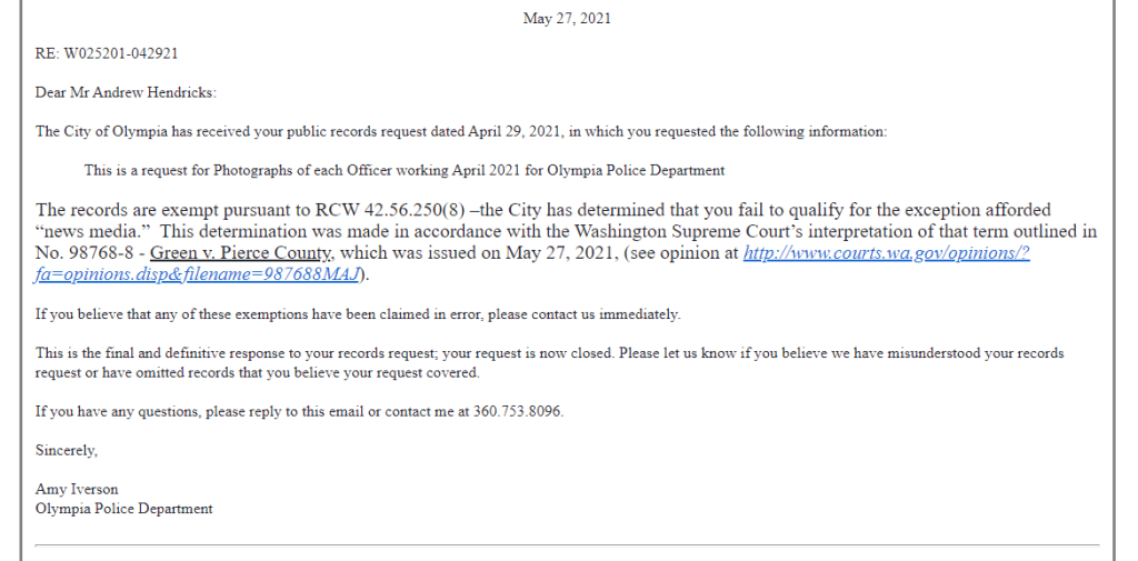 Why there are no 2021 Pictures of Olympia Police: