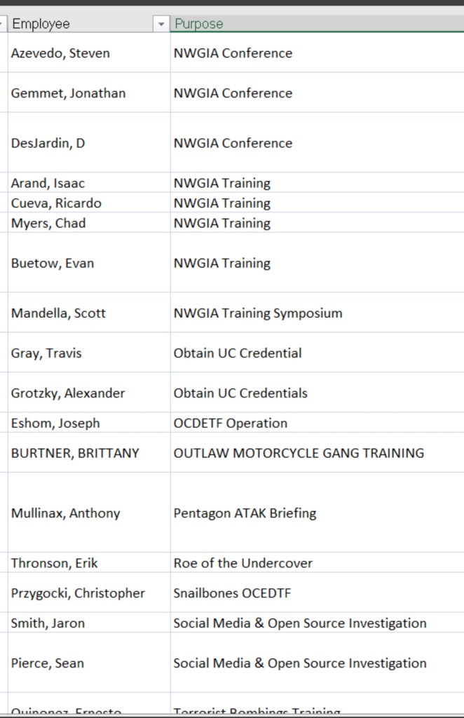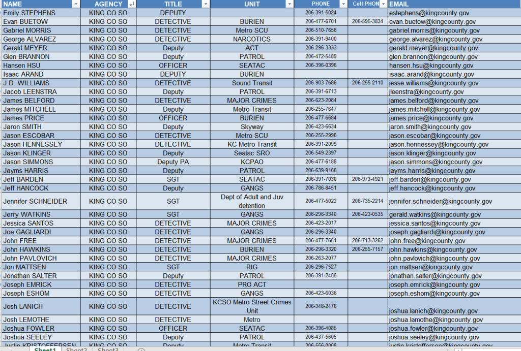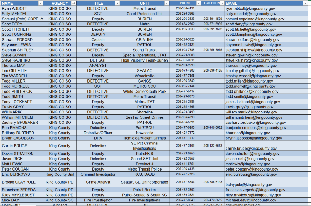 LIST OF ALL OFFICERS BY COMPUTER AIDED DISPATCH IDENTIFIERS: