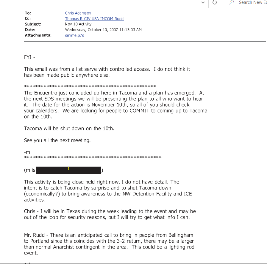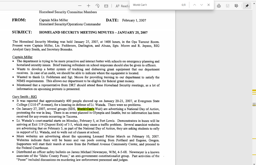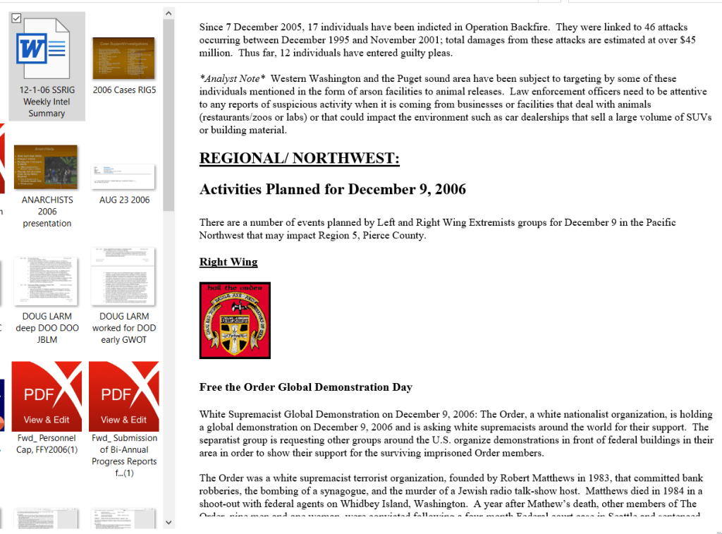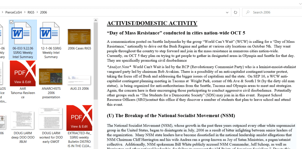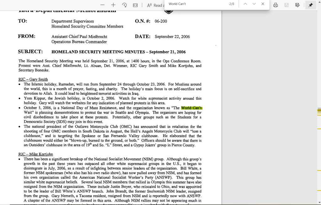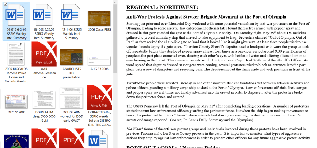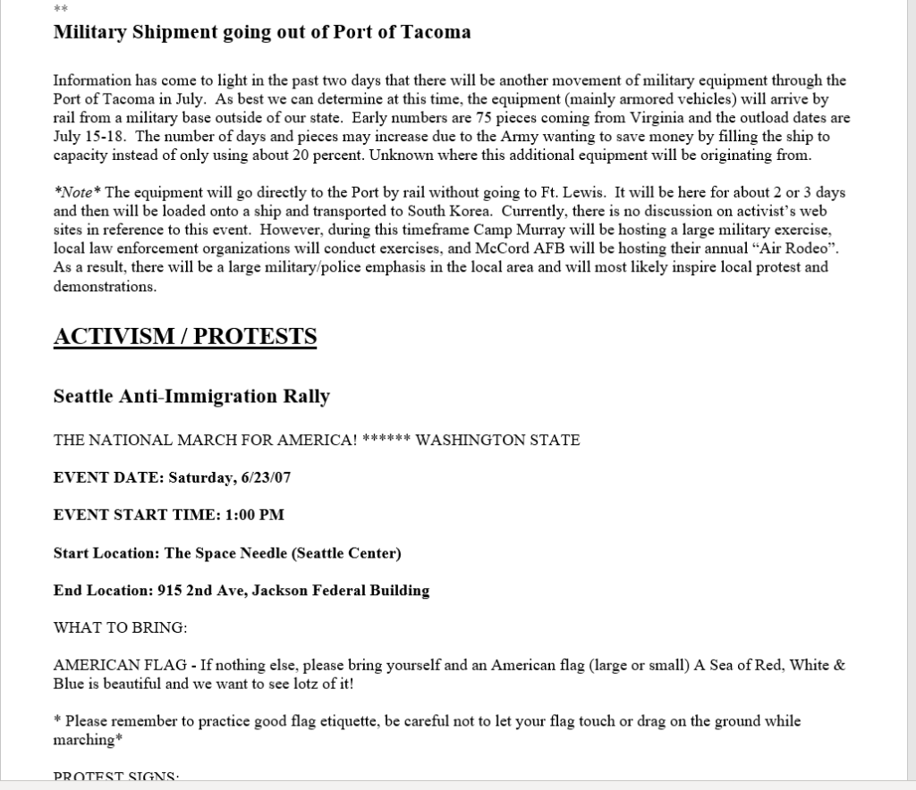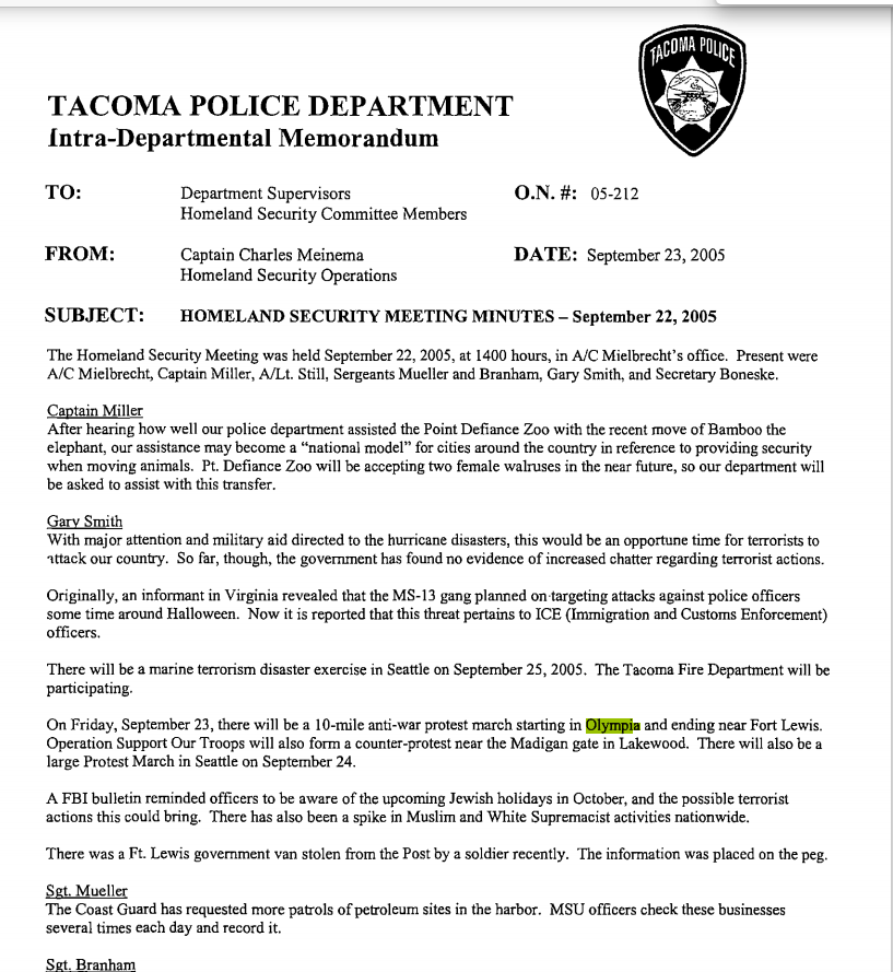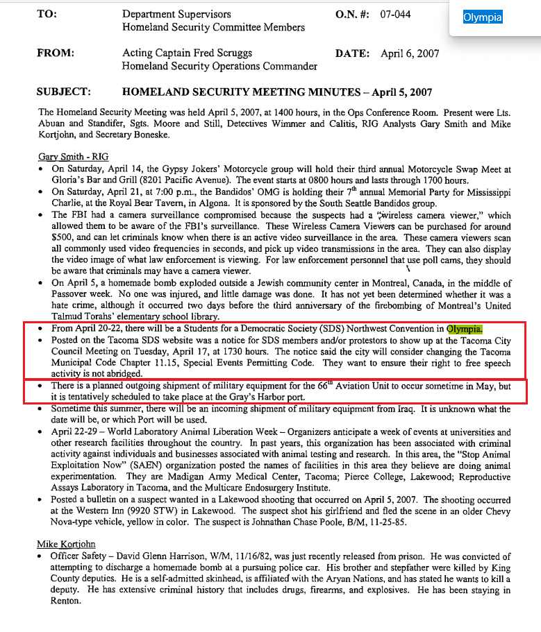 2005: SSRIG / RIG5 already looking at Olympia activists who came into their area