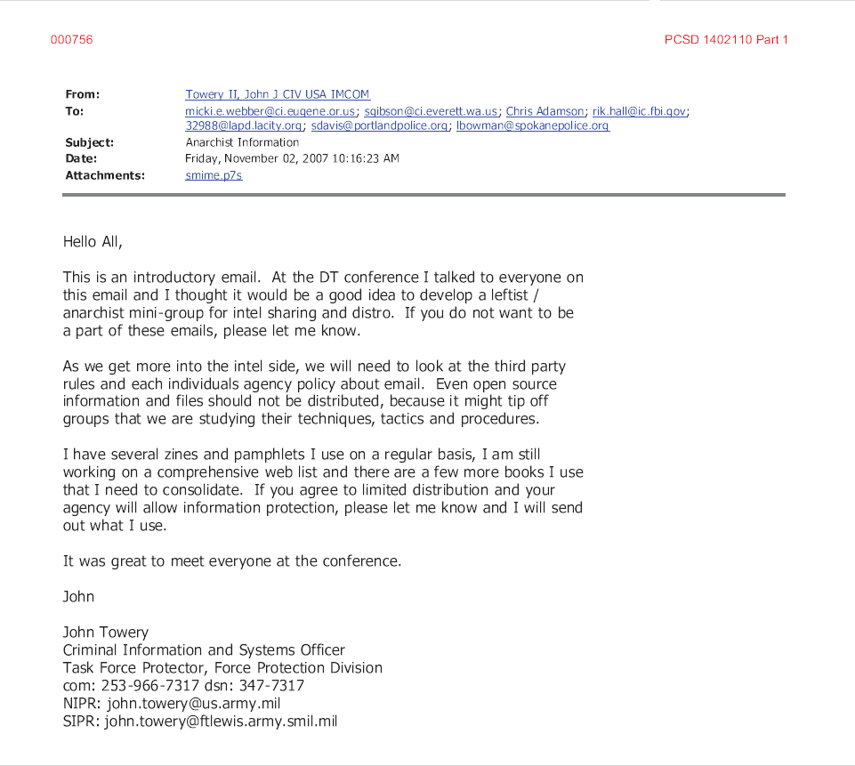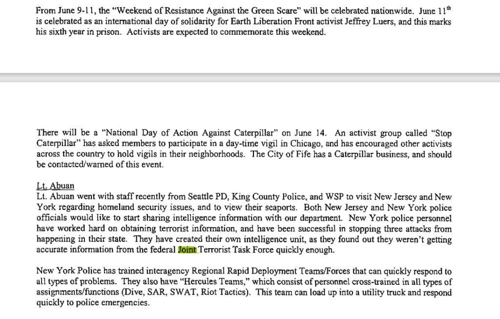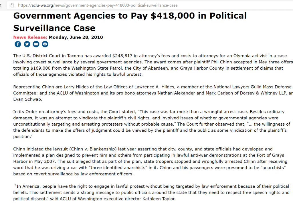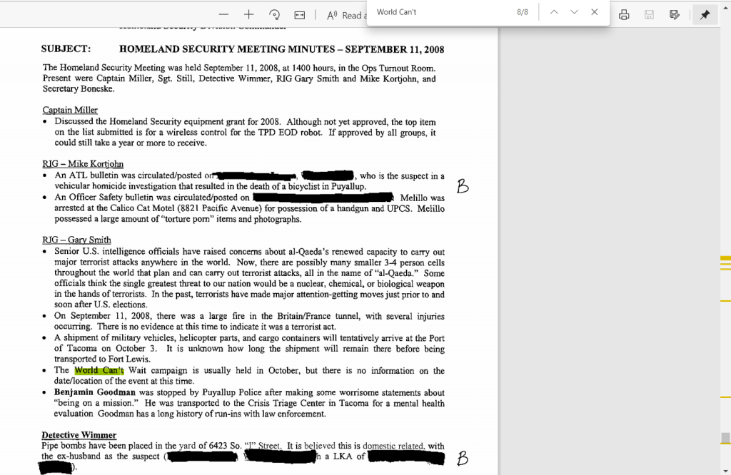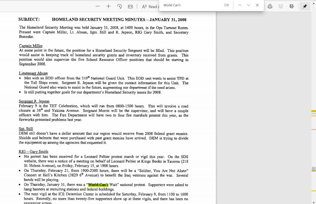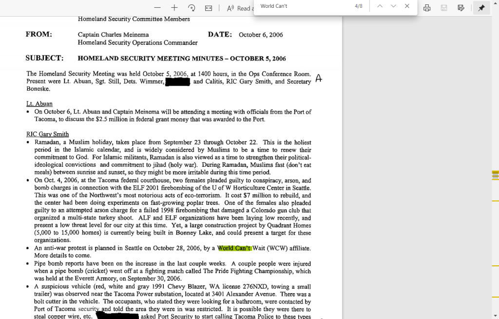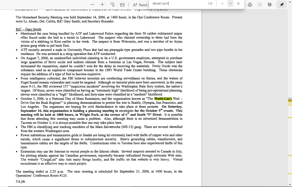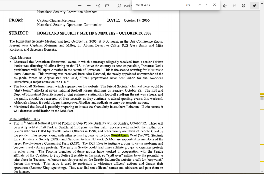 2005: SSRIG / RIG5 already looking at Olympia activists who came into their area