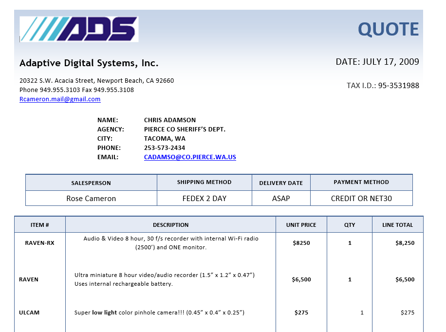 RIG5’s Adamson sends a write up to JTTF FBI Tarna D-McC