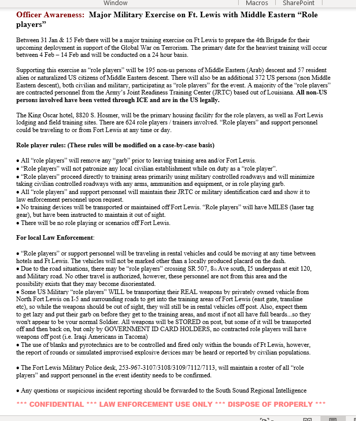 Local Police units always set up a major EX around 8 to 3 weeks prior to a given scheduled movement of Military Cargo for the next several years.