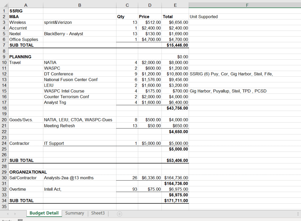 From an Oct 2006 Powerpoint Describing RIG5 Operations and Focus