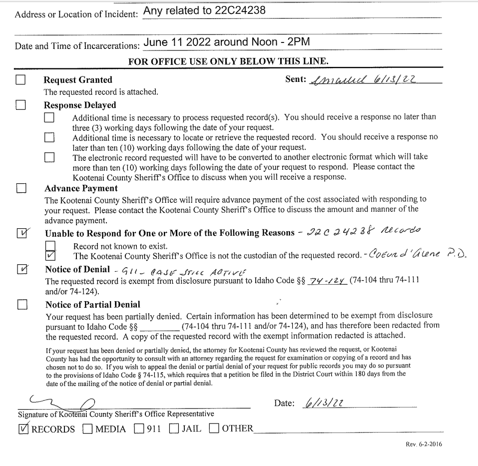 Known Arrestee Names Sourced from Kootenai County Idaho Website June 2022
