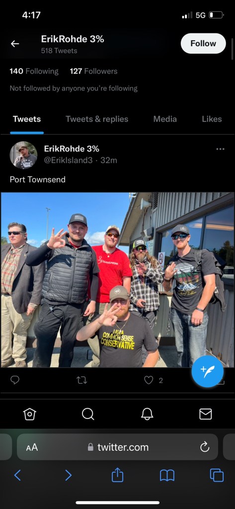 As a result of the attention this garnered, a Press Con was held at the bricked area adjacent to a City Park in downtown Port Townsend by a group of women who surrounded and supported the initiator of the Libel. A scuffle or a few of them broke out during this Press Con and a couple of times the police (state and local) came in to control the scene and make at least one temporary custodial arrest if not a full prosecution at that Mid-August event. Noted right winger media personality Robert Zerfing arrived and streamed from the scene.