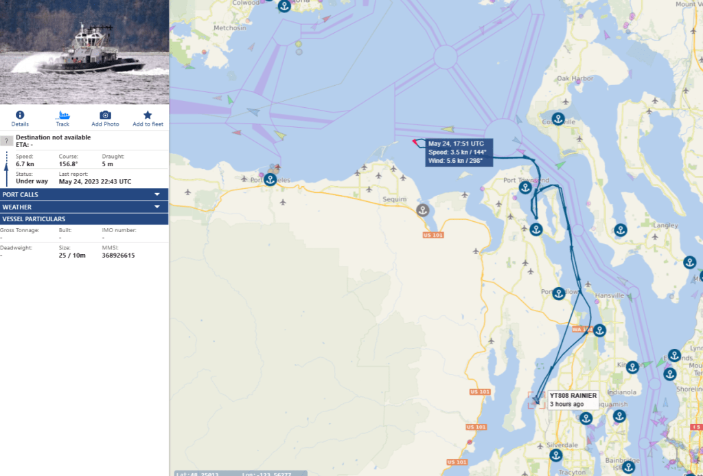 DEEPC16 keeps watch on the waters while the transit is happening, in case anyone would watch or interfere with the emerging platform. The WSP used to do this in Hood Canal, but alas – their imagery sharing is broken down and their Vendor is Kaput.