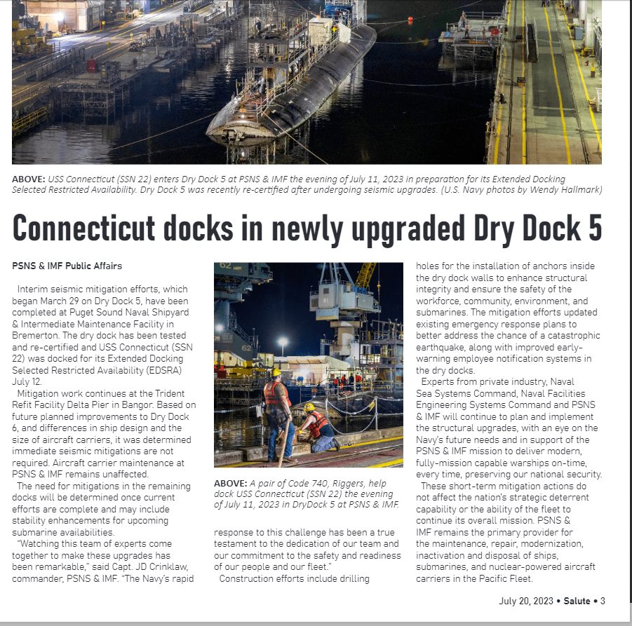 Jan 2024 Dry Dock 5 Connecticut and Dry Dock 4 SSBN 735 Pennsylvania
