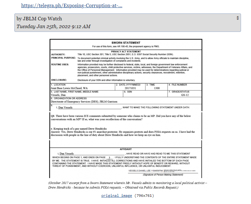 Purporting to be an insider’s assessment and public communications of a DES internal briefing the above article either admits, or falsely claims, access to classified and FOUO material on a US Military base, and then proceeds to communicate same. That’s a crime. Or, merely a different crime. It’s a crime either way you cut it. Which means it’s probably policy and practice rather than anomaly and deviation.